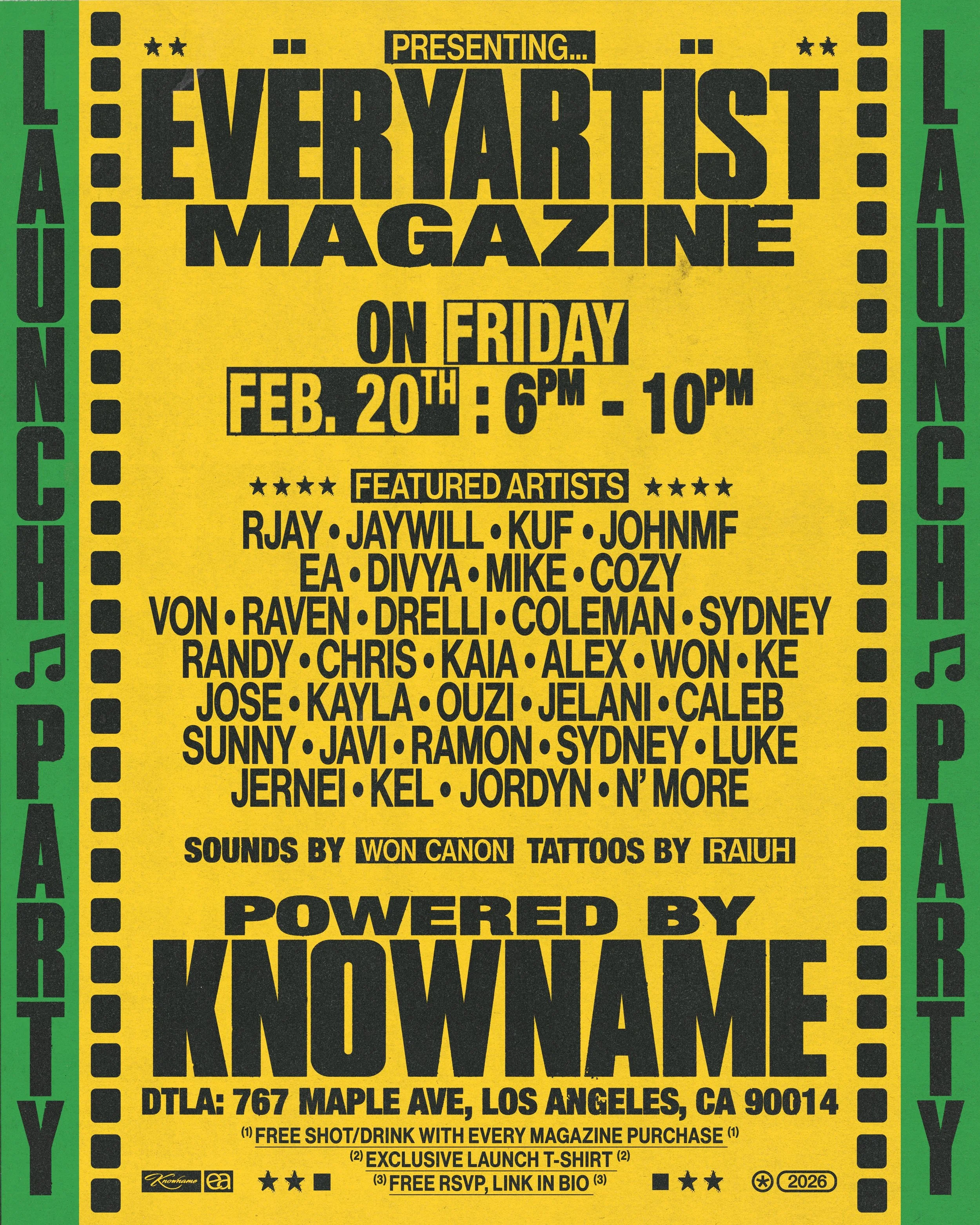EVERYARTIST MAGAZINE RELEASE Friday, February 20th 6pm - 10pm RSVP FLOWER HOUR VOLUME 2 February 22nd5pm - 10pm TICKETS KOMEH & KOFFEE Saturday, February 287pm-11pm RSVP View fullsize View fullsize View fullsize View fullsize View fullsize View fullsize View fullsize View fullsize Follow Us on social media β Follow Us on social media β Follow Us on social media β Host A WorkShop Learn More